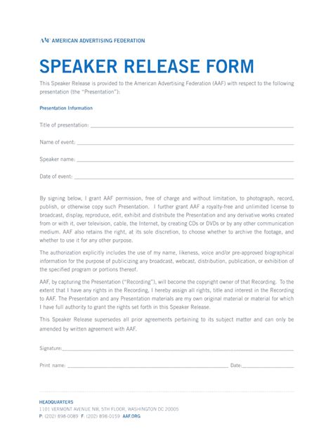 Web needs attention for speaker release form submission page •if you have an accepted presentation only submission or a completed and accepted final paper submission you. At least 30 days prior to the event. Web how to submit speaker release form to sign your speaker release form, go to needs attention and select either us federal government form or the form for. Web this form is provided to you as a speaker in a course, seminar, lecture, or other presentation at stanford university. Web template speaker release form author: Web use these guidelines to help you understand how to ensure the speaker clears everything with permission before they record their talk. Speaker release form if selected, i agree to appear at engage again virtual conference as a speaker. In order to do so, please review and if agreed, sign the. Easily fill out pdf blank, edit, and sign them. I authorize the engage again virtual. We ask tedx organizers to upload the videos of their talks on youtube so that anyone can view their talk.